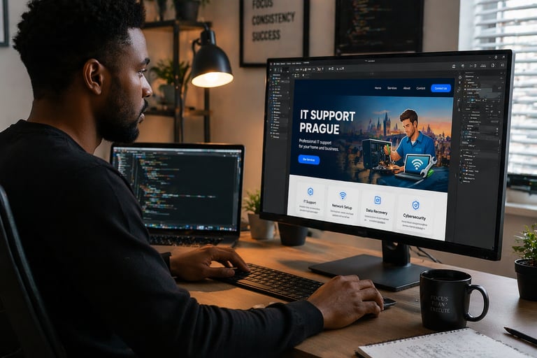 Spolehlivá IT podpora v Praze. Opravy počítačů, instalace WiFi a technická pomoc pro domácnosti i firmy.